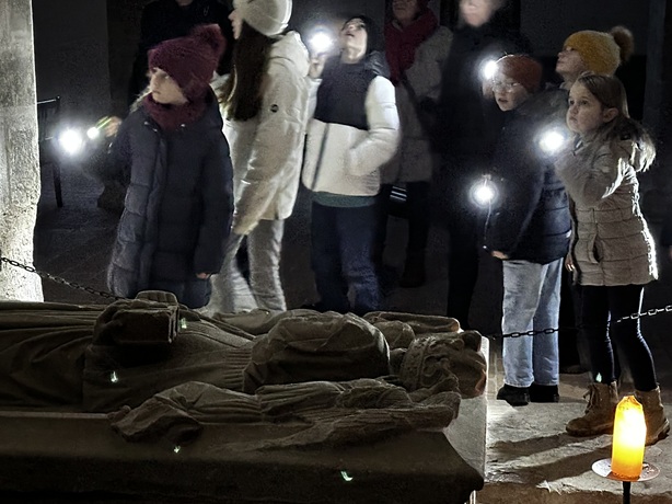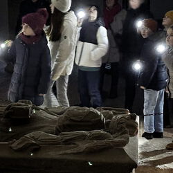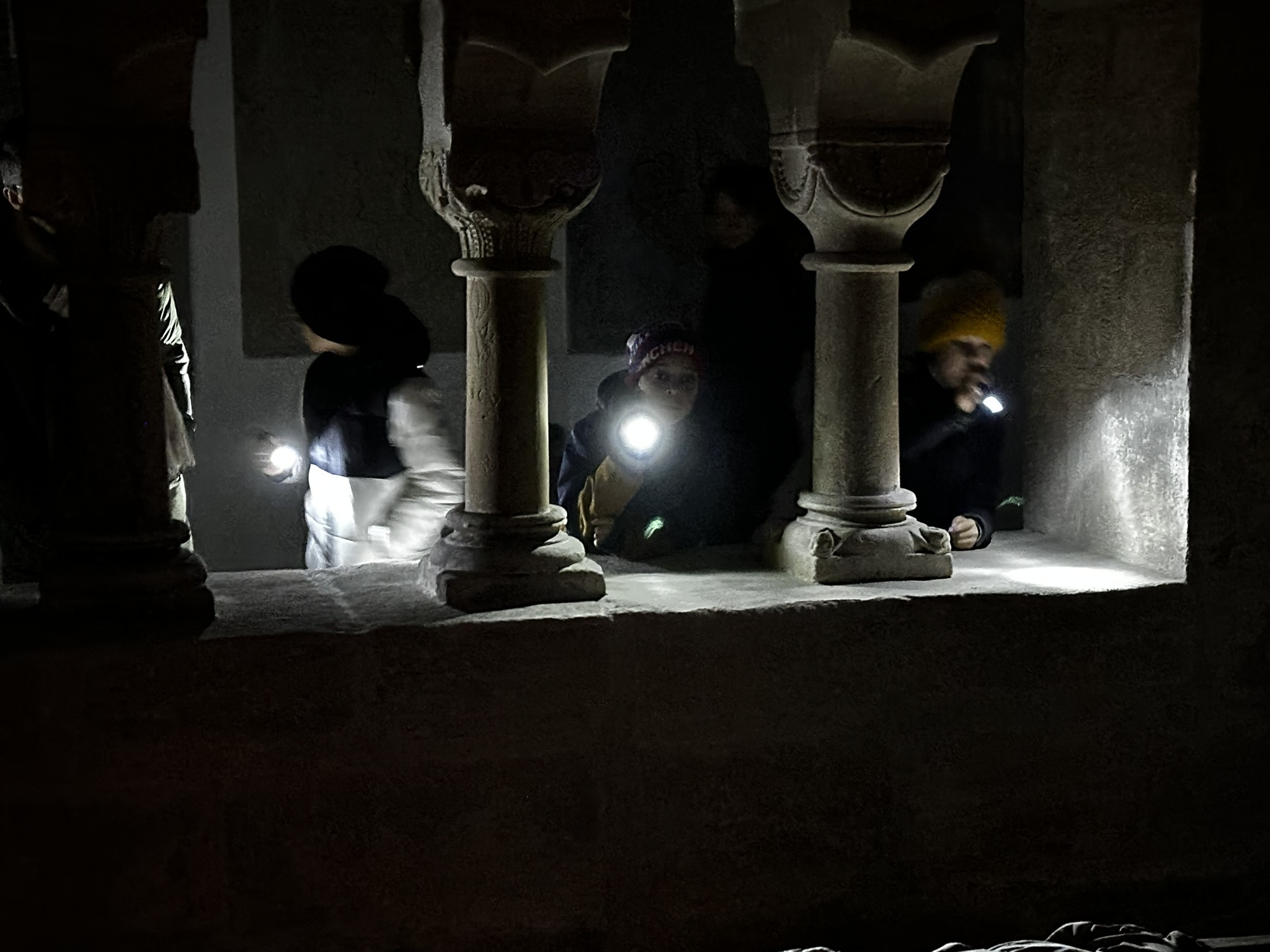 Gemeinsam machen wir uns – nur mit unseren Taschenlampen bewaffnet – auf die Suche nach den Spuren der Benediktinermönche. Warum war das Kloster für sie wie eine riesige Burg für den Glauben? Wie lebten sie an diesem abgeschiedenen Ort, fernab der bunten Märkte und lauten Städte?